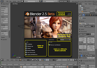 Primul lucru pe care îl observaţi atunci cand deschideţi programul este ecranul de start (splash screen). Acesta conţine o listă cu diverse linkuri, un meniu pentru alegerea configuraţiei de taste personalizată şi o listă cu cele mai recente fişiere salvate. Dacă nu doriţi să selectaţi nimic din acest panou daţi clic în afara lui şi acesta va disparea lăsând vizibil întreg spaţiul de lucru.